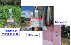 A multiple-function reservoir in southern Taiwan is introduced in this article. It’s responsible for water supply, irrigation, flood control, and tourism. It’s noted that we went to the site to install the monitoring datalogger and instruments at the same time as the reservoir was maintained. The system was installed in the reservoir to monitor the tilts and water pore pressure. The two nodes which attach the piezometer vibration wire sensors installed outside the dam and the other two tilt- nodes that detect the structure movement were placed on the building of the flood control and sediment-sluice tunnel construction. The server is installed on-site in the reservoir’s controlling building where the gateway is placed on the top floor of the building and connected to the computer server by using the RJ45 cable. Figure below shows the images of the wireless network system including the gateway, piezometer node, and tilts node.