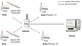 It’s not surprising that wireless sensor networks are widely adopted nowadays for health monitor in civil engineering, especially in the geotechnical field. Many advantages that the system could offer outweigh the conventional method, wired transmissions, such as time-saving and economic efficiency in terms of installation, maintenance, and management for both existing and new structures. For that reason, we chose a wireless sensor network including 4 nodes and 1 gateway device for the resorvoir project to monitor the building tilts and the pore pressure behind the reservoir. In this post, I will give a brief description of wireless sensor networks and then move on to introduce details of the project as follows.