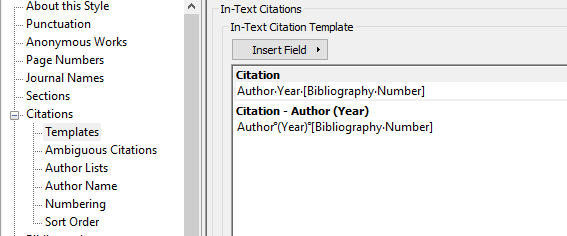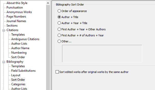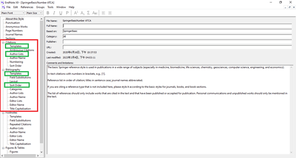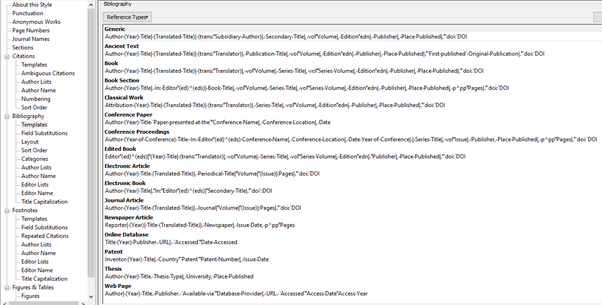 With regard to the reference list, select the Bibliography and modify the “Templates” and “Sort Order”. Modify the reference styles as shown below.