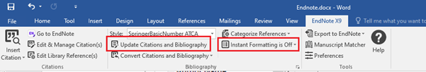 Last step: you can easily update your citation every time you need by clicking “Update citation and bibliography”. Stop automatically by turning off the “instant formatting”. Those options are shown below: