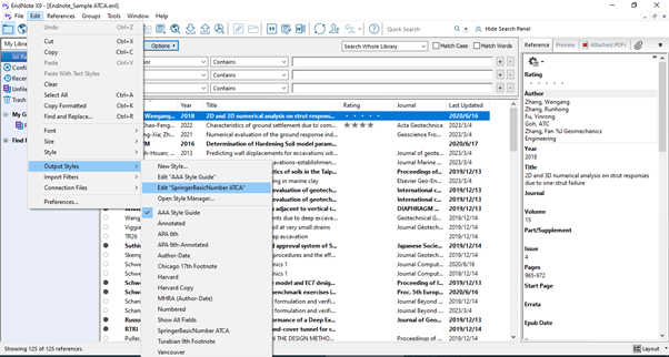 In this step, I selected a simple example for you on how to choose the correct style of reference. The requirements of reference from the Journal of Geotechnical ATCA include (1) citation and (2) reference list as shown below.