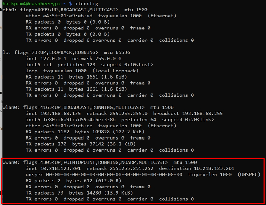 The next step involves configuring the QMI (wwan0) mode for the 4G module on Raspberry Pi. QMI mode offers a robust internet connection and is relatively complex to set up. The link here presents the complete step-by-step to install QMI interface. Alternative, you can follow the steps below:
