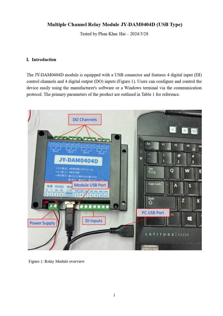 I conducted a test using the JY-DAM0404D module, which is a multi-channel relay featuring a USB connector. The device can be easily configured and controlled using the manufacturer’s software or a Windows terminal through the communication protocol. Below is the full report detailing my findings. Enjoy your reading!