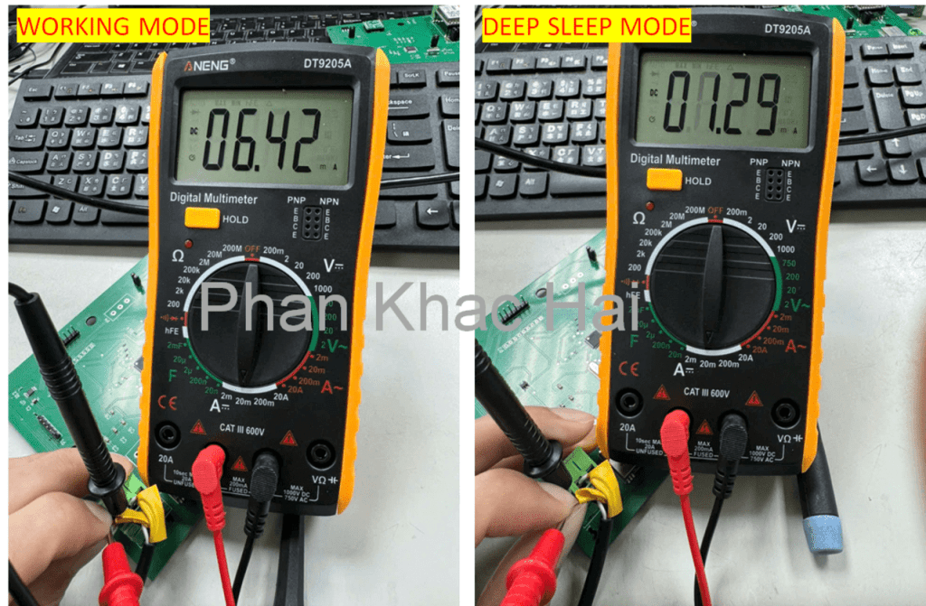 - Deep Sleep Mode: The current consumption dropped to 1.29 mA.